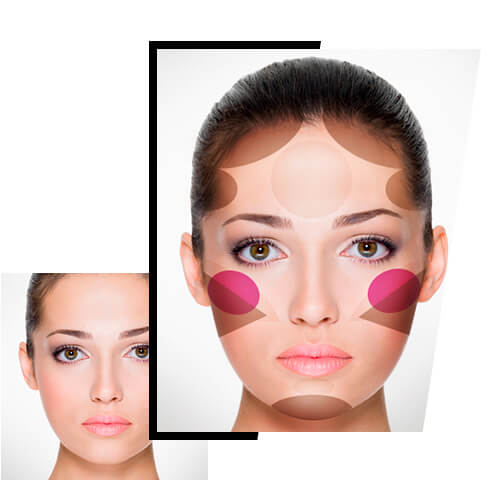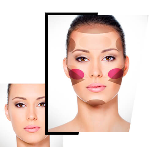 En este tipo de rostro solo tendrás que ponerle atención a los extremos. Aplica en la zona pegada a la línea del cabello y en el mentón, el tono más oscuro. Eso creará una sensación de perfilado instantáneo. Y dejaremos el iluminador para el centro de la cara.