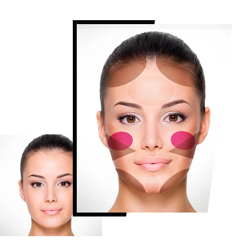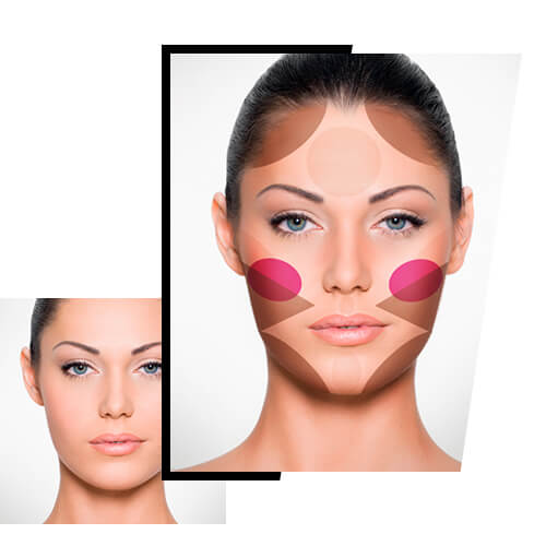 El secreto: romper con las redondeces de tu rostro. Para lograrlo, oscurece ambos lados de tus cejas, para hundir las sienes y debajo de los pómulos, para enmarcarlos. También puedes afinar la barbilla, aplicando el tono oscuro debajo de esta.