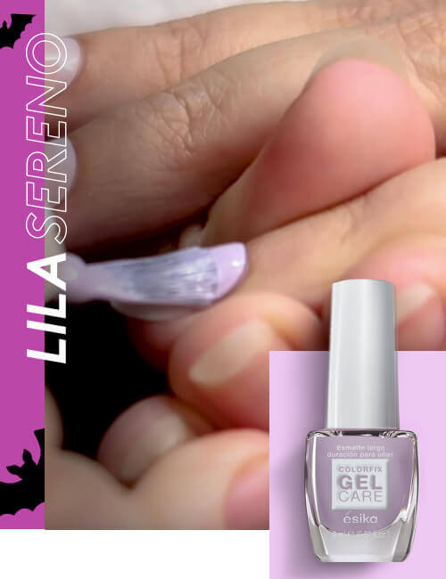Base para proteger a nuestras uñas: Base + Acabado 6 en 1Esmalte Colorfix Gel tono Lila SerenoEsmalte Colorfix Gel Care tono Negro IntensoBrillo final: Colorfix Gel Care Brillo