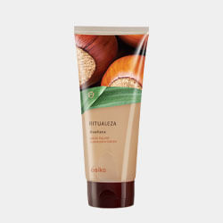 El primer paso es aplicar el gel exfoliante avellana de Ritualeza en tus manos y en tu cuerpo.