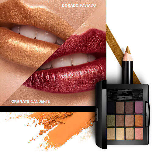Colorfix Lava effect Dorado Tostado,  es perfecto para un look de día en tonos neutrales, porque le  aporta brillo al outfit, además de volumen a los labios. Mantén  el equilibrio de este maquillaje con una base natural, ojos con sombras neutras o cobrizas  y delineador dorado. Si tu  evento es de noche, puedes emplear el mismo maquillaje de día,  solo que ahora cambiaras el labial por uno más vibrante y con visos dorados el nuevo color Granate Candente, tonalidad que le sienta muy bien a la piel latina.