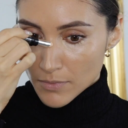 Aplícalo en la zona de la ojera que usualmente será un punto importante para camuflar y resaltar, también puedes aplicarlo en la zona lagrimal que siempre se tiende a hundir y en la zona de la nariz.
