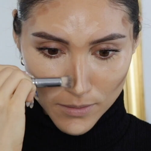 La nariz también es una zona importante para aplicar el tono oscuro, aplícalo por los lados para que se vea más delgada y luego debajo de la nariz para levantar un poco la punta.