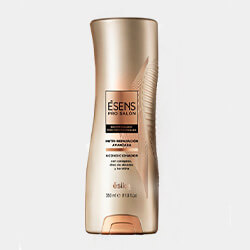 Utiliza nuestro Acondicionador Ésens Pro Salón para mejorar el brillo de tu cabello y dejarlo 100% más suave. Recuerda que, a la hora de aplicarlo, debes extender el producto desde la mitad de tu cabello hasta la punta, de manera uniforme. Hazlo con mucho cuidado y utiliza un peine de plástico si es necesario.
