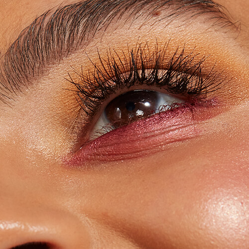 Para amplificar las tonalidades de tus sombras, usa el Delineador Colorfix Gel Tattoo a lo largo de la línea de tus pestañas inferiores. Utiliza un pincel delineador de ojos para mezclar suavemente con el tono salmón de tu sombra. Se creará un efecto suave y sombrío en la parte inferior de tus ojos.