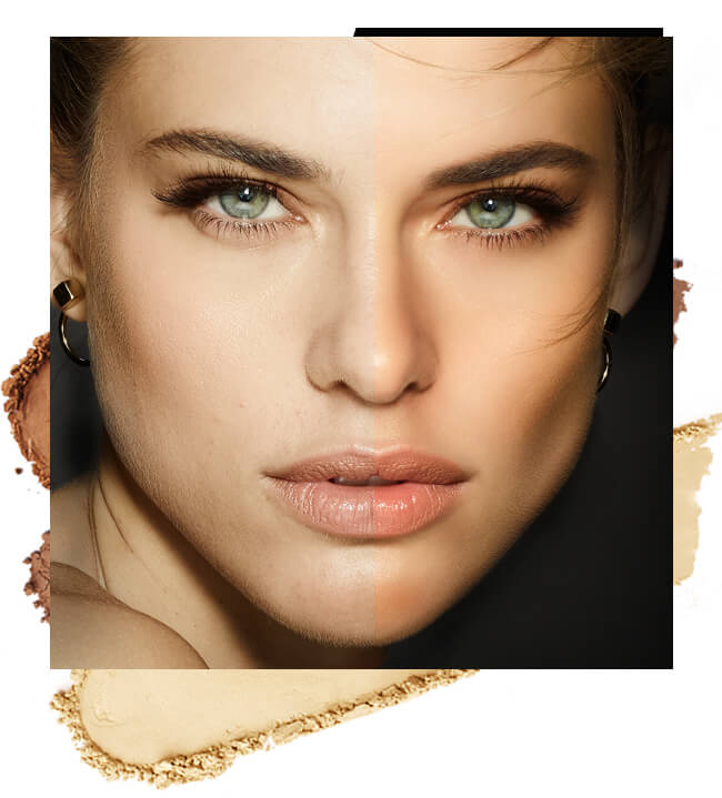 En este tipo de rostro solo tendrás que ponerle atención a los extremos. Aplica en la zona pegada a la línea del cabello y en el mentón, el tono más oscuro. Eso creará una sensación de perfilado instantáneo. Y dejaremos el iluminador para el centro de la cara.