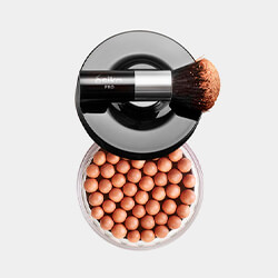 Aplícalo con una brocha en la parte superior de tus pómulos y un poco en tus hombros. Y para sellar el rostro con un acabado perfecto utiliza las Perlas de Sol  y el Rubor HD