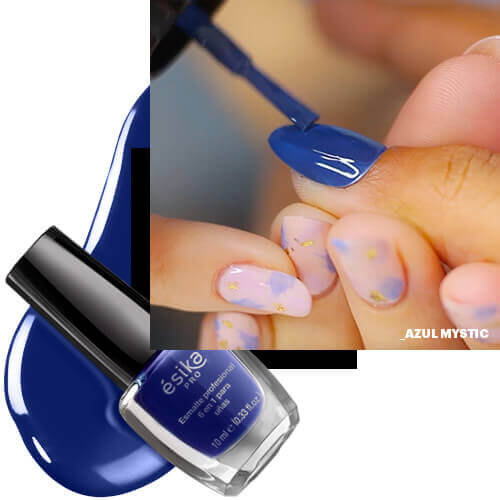 Como en todo trabajo de uñas, debemos siempre aplicar una primera capa de base, ya que nos ayudará a que el color dure más tiempo. Luego, aplicamos el tono Azul Mystic.