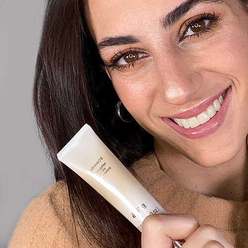 Las zonas que deberías tener en cuenta para aplicar el iluminador radiance son: la parte alta del pómulo, el arco de la ceja, el lagrimal, arriba del labio, un poquito en el centro de la frente y por último en la punta de la nariz.